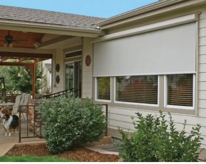 ข้างนอก, เฉดสีลูกกลิ้ง สามารถใช้ได้ แต่มีความเสี่ยงบางประการที่เกี่ยวข้องกับการติดตั้งประเภทนี้ก่อนอื่น ม่านม้วนต้องทำจากวัสดุที่ทนทานต่อสภาพอากาศวิธีนี้จะป้องกันไม่ให้ฝนหรือสภาพอากาศอื่นๆ ทำลายร่มเงานอกจากนี้ควรติดตั้งที่บังแดดให้เหมาะสมเพื่อป้องกันลมพัดไปมา